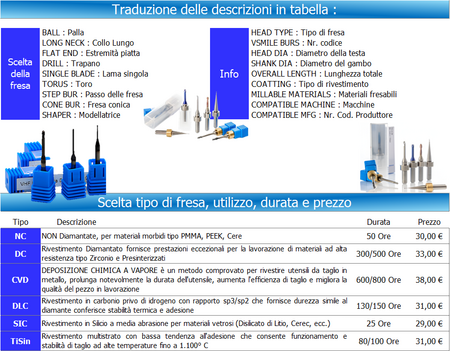 | TESTA TIPO | Drill, Palla, Piatta, Torus |