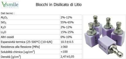 Blocchi in Disilicato di Litio presinterizzato ad alta resistenza e flessibilità. Sono adatti alla fresatura CAM a umido i cui blocchi Smile offrono risultati estetici pari ai denti naturali uniti ad un’ampia gamma di applicazioni protesiche quali :