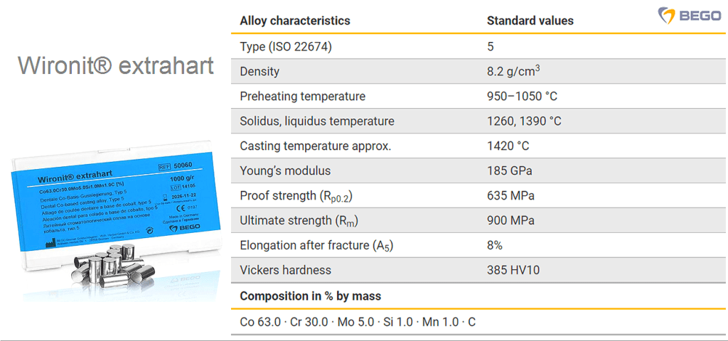 Wironit extrahart € 342,00 (Iva esclusa) Lega in Cromo Cobalto per scheletrati Lega a base di Cromo Cobalto con specifiche caratteristiche tecniche studiata per la realizzazione di scheletrati con ganci e protesi combinate di alta qualità. Paga in 3 rate senza interessi. Abilita JavaScript nel browser per completare questo modulo.Abilita JavaScript nel browser per completare questo modulo.Questo prezzo non ti piace? Fai una proposta *--- Seleziona l'articolo ---100 pro VDS3 CP3D Prism3D Pro3D VsmileA5 ProAccessoriAcetalAckermannAcron cartucceAcron granuliAcry c&b dentineAcry c&b opachiAcry c&b smaltiAcry liquidiAcry pomiceAcryBluAcryEvo anteriorAcryEvo posteriorAcryl BondAcryLux anteriorAcryLux posteriorAcryOrt SCAcryPlus anteriorAcryPlus posteriorAcryPol FastAcryPol RAcrySelfAcrySelf liquidiAcrySelf PAcrySmart anteriorAcrySmart posteriorAcryTrayACS AspirAcutrayAddisilAddolcitoriAlginAll cleanerAlldent fluxAlldent LotAllyAlpinAnelliAoral Scan3Aqua spacerAquasepArchettoArco Easy bowArti 5002Arti 5030Arti 5032Arti 5050Arti 5050 PlusArticPins accessoriArticPins KitAspirasalivaAustromatBarraBase matic EvoBase platesBasplitBD315 wet&dryBegoDipBegoformBellathermBi-DentBi-GenBioBleachBioLonBlastBlu bunsenBlue markerBody colorsBoraxBorder waxBoxing waxBoxTidyBravoBrega LineBrushC512DC518DWCalibrataCalibroCannelliCappeCartucceCascoCastCastdon kitCastdon resinaCastdon ricambiCastogelCavakCeka classicCeka multiCeka multi OCeka revaxCeka ricambiCeka siteCenit LCentro legnoCera in fogliCera verdeCeraFlex ACeraFlex BCeraFlex CCeraStarCere ThowaxCervical ThowaxCF-2 LargeCilindri e BasiCilindri in gommaCilindri pressClassica correctorClassica croma dentinaClassica dentineClassica dentine intensiveClassica dentine opacheClassica gengivaClassica glasuraClassica intro kitClassica liquidiClassica opachiClassica smaltiClassica smalti opaliClassica trasparentiClassica trasparenti colorClassica trasparenti opalClean 140Clean BoxClear spacerCollaConsequentContact wax1Contact wax2ContenitoreCopraSintec KCotoneCoulisseCovid testCrocolitCrogioliCrogioli BegoCroma Color pastaCroma color polvereCrystalCT grezziCuccioloCutCutex bondCutter 10CuvetteD grezziDacos KitDacos SoftwareDebubblizerDental boxDeprag - Cr/Co, TitanioDeprag - PMMA, PEEK, CeraDeprag - VetroceramicaDeprag - ZirconiaDF 100DF 200DF 250DF 300DF 350DF 400DF 50DF 500DF 600Diagnostic IQDiamantati telatiDiamond 10Die hardenerDie spacerDigiscanDippy easyDischi diamantatiDischi sgrossaturaDischi telatiDisilicato SmileDOF - PMMA,PEEK,CereDOF - Premill Cr/Co,TitanioDOF - VetroceramicaDOF - ZirconiaDosper evoDoubleLayerDrillDrufomat scanDrufosmartDrufosmart scanDrufosoftDrufoSoft colorDS-EX Pro autoscanDublimatPro evolutionDublisilDunatronicDuo dipDuosepDuplicaDuplimedDuplosilDurodentDurolDuron filoDuropont complementDuropont flash Duropont liquidiDuropont opachiDynamicDynax clearEasy sandEasy waxer1Easy waxer2EasyDiscECA 550ECF 3N1ECF 3N2ECF 3N3ECF 44ECK 60ECK 80ECM 400ECM 500PEco linerECP 4ED LaserEFG 130EFP 100EFP 100 pressEFZ 21EGV 14/18EGV 28/28pnElectrotypeElite dental stoneEltropol 300EMTEMT 3800EPI 1EPM 1ESB 4ESB LineEV LineEvoColor bodyEvoColor PaintOnEvolution masterEvolution paletteEvolution stainsExocadEye evolutionEye evolution maxFalcon 40Falcon 50Falcon 60FavoritFeltroFibraFibreFilo cotoneFinishFixing GelFixTemp c&bFluid vestFluorFlussmittel CFornax TFotodent castFotodent dentureFotodent gengivaFotodent guideFotodent modelFotodent splintFreeToneFresartFujirockFurboFurbo composite baseFuser waxGelGeloformGelonGelovitGengivalGeo 5Ghenesyl light bodyGhenesyl monoGiant waxGipsExGiroform accessoriGiroform basiGiroform piastreGlobal KitGlobo LineGomminiGoVestGranulatoGreenWaxGripGuanti latticeGuanti nitrileGumQuick implantHard rockHardisilHexagonHS ConceptVestHumidorHumidor stainsHydrovap proI-BoxID grezziIdea ProIdea Pro WAFISImes-C. - Cr/Co, TitanioImes-C. - PMMA, PEEK, CeraImes-C. - VetroceramicaImes-C. - ZirconiaImperialInductionInjectorInox bunsenInox pressIQ sticksIris lineIsoIso RPIso TopIsolexIsoquickJet castK 30SK 35NK 35TK2 lubeKeramikBondKeyCastKeyGuideKeyModelKeyModel ultraKeyOrthomodelKeySplintKFO extrawhiteKoalaKocherKombiplastKoroxKromoglass 3KromopanLabo DustLabo2 DSLabo2 ECMMLabo3 CAMLabo3 DSLabo4 allLabormat THLaborsilLameLED hlLED hlqLeghe WegoldLight spacerLiquidi BegoLiquidi SheraLM 36LubressLumin smileLuxM 8300Maestro 3DMagic greenMagnetiMandriniManipoliMascherinaMaximun 2000Medit T LineMegaBase adesivoMegaBase KitMegabase ricambiMegaProvi dentineMegaProvi smaltiMetal brushMetastarMFAMMicroDigitalMicroJetMicroJet-S lineMillMini DalboMiniLuxMinoxydMixerMixingMK 60Modralit KitModralit ricambiMoon Light 3Moon Night S 4KMP-4MP-ResinMultipress ecoMultispotMuslinaN4 45KNanoVarnishNatural lineNautilus TNovoplast flashNylwaxgunObserverOcclusprayOdontosilOndaOrthomerOT capOxideP-DatP-LabP-NexP-SintPalafiberPalaPressPalaPress liquidiPattern resinPelo capraPelo cotonePerniPettinePF ProPhiladelphiaPhoto flaskPHOTOPOL DigitalPhotopol proPHOTOPOL Vacuum+GasPhrozen Sonic CS+Phrozen Sonic LS+PiastrinePilastro 1300Pilastro 1301Pilastro 1310Pilastro 1311Pilastro 1320Pilastro 1321Pilastro 1710Pilastro 1720Pilastro 1722Pilastro 1732Pilastro 1770Pilastro 1780Pilastro 1790Pilastro 1792Pilastro 1912Pilastro A-1050Pilastro A-1060Pilastro A-1070Pilastro A-1076Pilastro A-1078Pilastro A-1080Pilastro A-1130Pilastro A-1140Pilastro A-1150Pilastro A-1160Pilastro B-1110Pilastro B-1120Pilastro B-1170Pilastro B-1180Pilastro B-1190Pilastro B-1200PinSystemPinza cilindriPinza gessoPistoni Ø13Plaque photoPlaquitPlasterPlastiFormPlastvacPolanPolyPoly cpPolymax 1Polymax 3Preci clixPreci horixPreci sagixPreci tubixPreci vertixPremiumPremium APremium BPremium CPremium DPremium EPremium FPremium GPremium HPremium IPremium JPremium KPremium LPremium MPremium NPremium OPremium PPremium QPremium RPremium SPremium TPremium VPremium WPremium XPremium YPremium ZPremium Z1Premium Z2Premium Z3Press 660PrimaPro 275Pro 300ProBase hot liquidProBase hot polvereProblastProthesis e